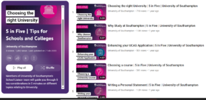 Members of Southampton University’s School Liaison Team will guide you through topics to guide you in your next step after sixth form or college. This information comes in the form of a YouTube playlist where all the videos are under 5 minutes!