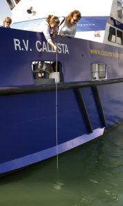 The Secchi Disk is an instrument used to measure how far light can penetrate into water. It is a simple piece of equipment, with no moving parts or electronics, and provides consistently accurate results. For this reason it has been in continuous use since its development, in 1866, by Pietro Angelo Secchi. The disk is simply lowered over the side of the vessel and down into the water until you can’t see it any more.
