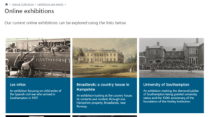The University Hartley Library Special Collections Gallery was funded by the Heritage Lottery Fund primarily for the display of material from the collections to encourage public awareness and access. The exhibition programme focuses on themes within the collection and links in with University academic activity including celebrations of research, conferences and contributions to national and international events and commemorations – and many have parallel online exhibitions which can be viewed via the link below.