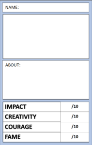 We know it will be hard to rank the impact, creativity, courage and fame of all of everyone you find, so this may be a great opportunity to do some further research online to help you decide!